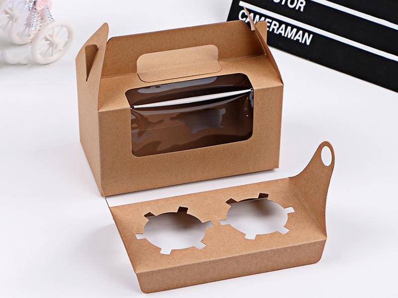 手提杯子蛋糕盒-2格牛皮
