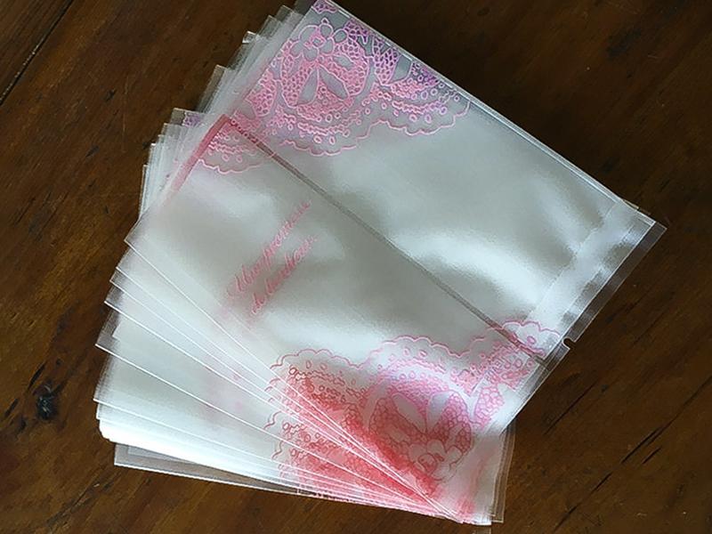 霧面7*10白底粉色蕾絲機封袋