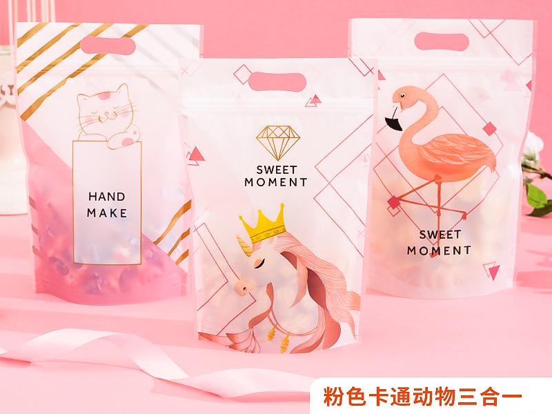 六兩手提夾鏈袋-粉色卡通動物3合1
